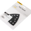 A pad saver for 90x90x90mm triangle backing pads. Mirka’s pad savers are designed to protect the backing pad from wear and tear, when sanding aggressively and continuously with net products. These cost-effective pad savers, placed between the backing pad and the sanding triangle, should be changed regularly. The pad savers prolong the life of the backing pad.
